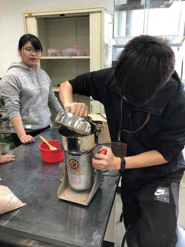 由何宜恬老師帶領學生秤取、粉碎飼料原料。