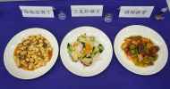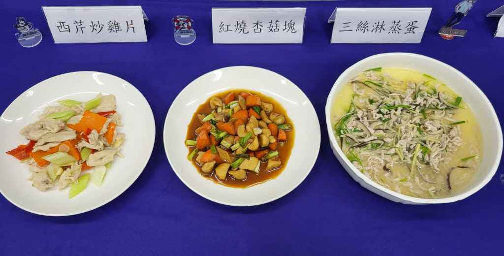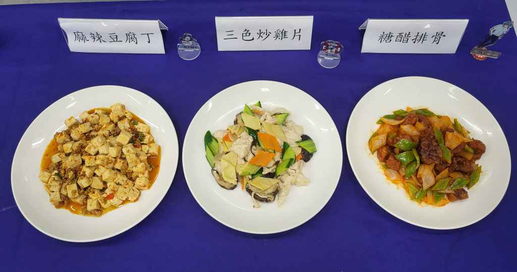 302-1 西芹炒雞片 三色淋雞蛋 紅燒杏鮑菇 302-2 糖醋排骨 三色炒雞片 麻辣豆腐丁